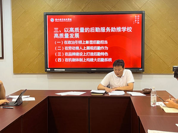 为深入贯彻落实党的二十大精神,7月5日下午,后勤保卫处党支部书记郑立平以《弘扬我党后勤传统,建设学校高质量后勤》为题,为支部党员上了一堂精彩生动的党课。
