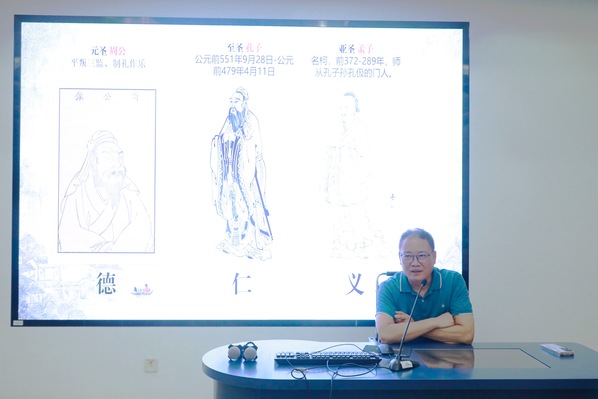校党委委员、宣传部(统战部)部长孔庆红就师德师风问题与老师们开展探讨,孔部长从儒家思想谈起,深入浅出地向老师们讲述了我国优秀的传统文化,接着从“传承、守护、担当”三个维度讲述了我们应该如何继承和发扬优秀师德师风,并希望老师们能树立德育为先的理念,以生为本、为国育才,树立志存高远、淡泊名利的职业境界和诚实正直、客观公正的高尚人格,要有诲人不倦、学而不厌的育人态度,做到以身作则、言传身教。