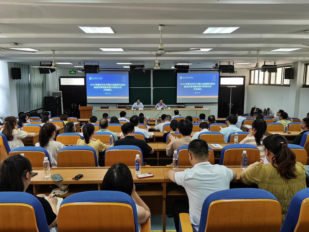 为深入贯彻落实党的二十大关于“全面推进乡村振兴,坚持农业农村优先发展,加快建设农业强国”的重大决策部署,打造一支懂农业、爱农村、爱农民的衢州“三农”干部队伍,近日,由市农业农村局主办,四省边际(衢州)共富学院承办的2023年衢州市乡村振兴战略强村富民集成改革专题中层干部培训班在我校举行。市农业农村局机关、下属事业单位、市农林科学研究院和各县(市、区)农业农村局中层以上干部,以及部分重点农业乡镇分管领导共40余人参加培训。