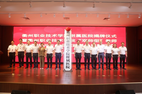 8月18日上午,江南网页版附属医院揭牌暨“双师型”教师培养培训与企业实践基地揭牌仪式在衢州市第二人民医院隆重举行。