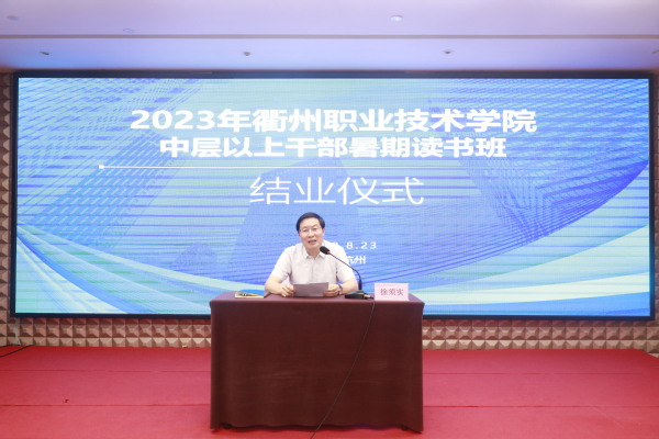 校党委书记徐须实对本次培训进行总结。他指出,本次培训重点突出、形式多样,组织严密、成效显著,提高了全体中层以上干部理论素养、党性修养,激发了进取意识、责任意识,坚定了助推学校高质量发展的信心和决心。他强调,全体中层以上干部要认真做好消化、转化、升华三篇文章,将读书班所学、所感、所悟转化为推动学校高质量发展的强大动力,以更昂扬的姿态迎接新的学年到来,奋力推进“双高”院校、职教本科建设。