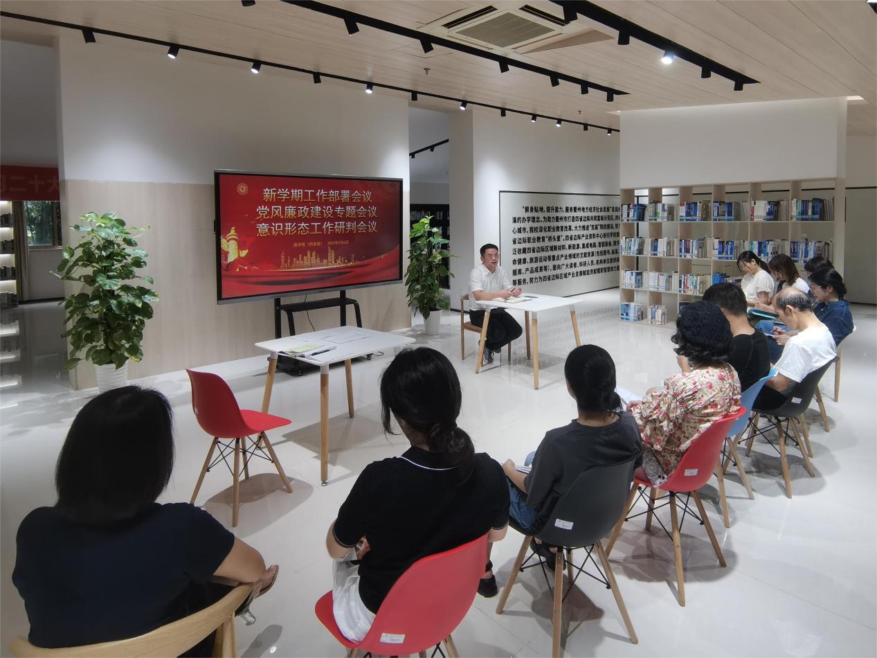9月6日上午,图书馆(档案馆)在四省边际产业资料中心召开了新学期工作部署会议、党风廉政建设专题会议暨意识形态工作研判会议。会议由教辅党支部书记、图书馆(档案馆)馆长夏武祥主持,部门全体教职工参加了会议。