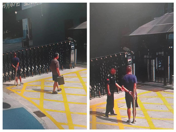下午2时左右,由衢州蓝天救援队2名队员扮演的“社会人员”出现在学校西门,其中1人手持1米长棍棒,另1人手持汽油桶,一直在西门门口徘徊,形迹可疑。安保人员发现异常后,立即向后勤保卫处汇报可疑情况,并上前交涉了解情况,最终成功将2名可疑人员劝离校门。随后,3名乔装打扮的“社会人员”到达学校南门,冒充学校电工培训学员试图进入校园。面对要求配合核验身份的安保人员,3人拒不配合,情绪激动,企图强行闯入。现场安保人员第一时间上前阻拦,并使用对讲机通知其他安保人员。安保人员与3名“社会人员”展开激烈追逐搏斗,最终合力将他们成功制服。