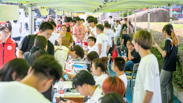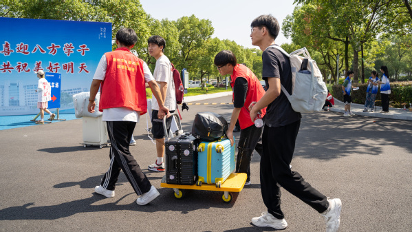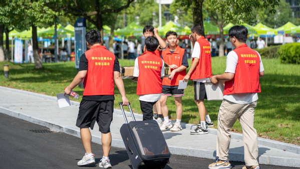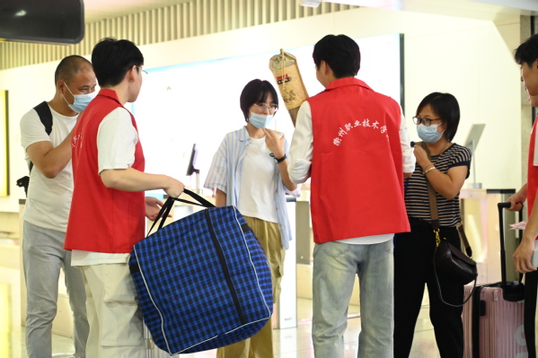 他们耐心地为新生解答各类入学问题,坚守在各个新生报到点提供热情服务。