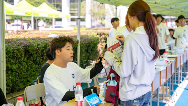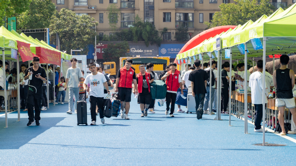 用“新”装扮的校园格外美丽整洁,新生们在家长的陪同下进入校园,学校工作人员、学生志愿者以及各学院的老师们以饱满的热情为2023级新同学办理入学手续。