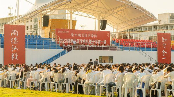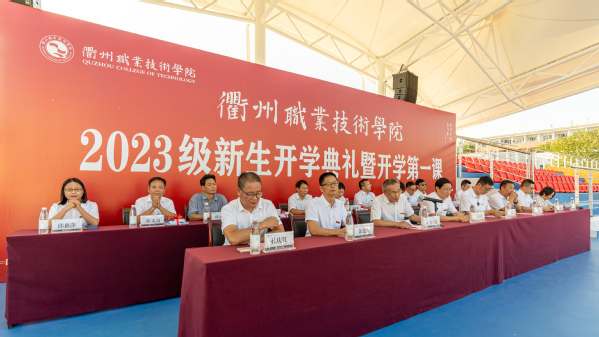 9月18日下午,我校隆重举行2023级新生开学典礼暨开学第一课,2400余名新生齐聚田径场,开启大学生活崭新篇章。党委书记徐须实出席,党委副书记、校长吕延文讲话,党委副书记何百通主持,党委委员、纪委书记方焕云,党委委员、副校长余建军、姚水洪,党委委员、宣传部长孔庆红,党委委员、组织部长周帅参加。