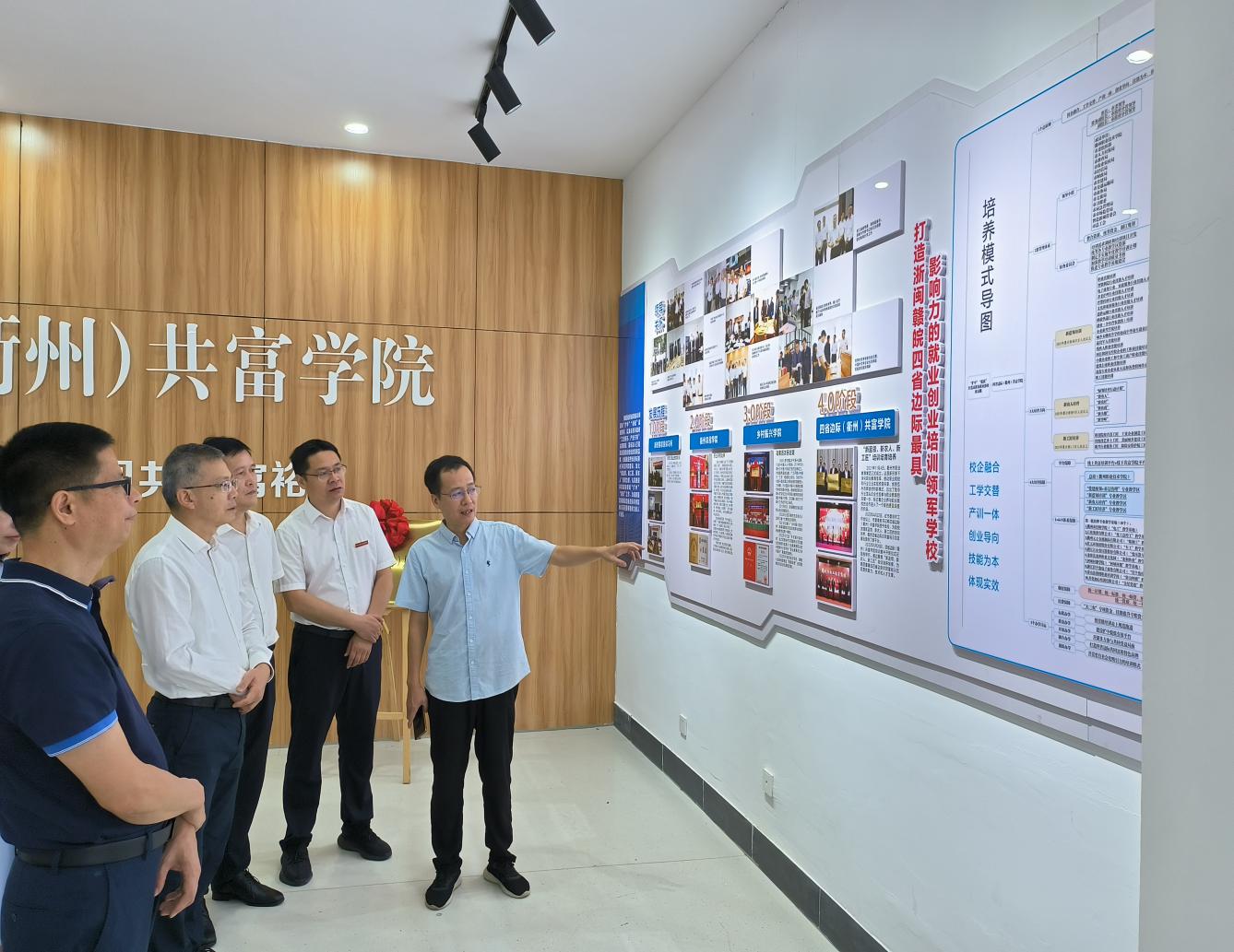 朱瑞清一行实地考察四省边际(衢州)共富学院,现场观摩“金牌月嫂”“金牌保安”综合职业技能大赛后,对我校围绕省委省政府共同富裕“扩中”“提低”战略要求所做的工作表示充分肯定。