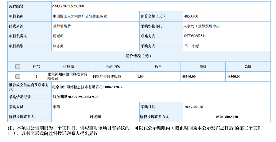 江南网页版中国博士人才网站广告宣传服务费自行采购信息公示