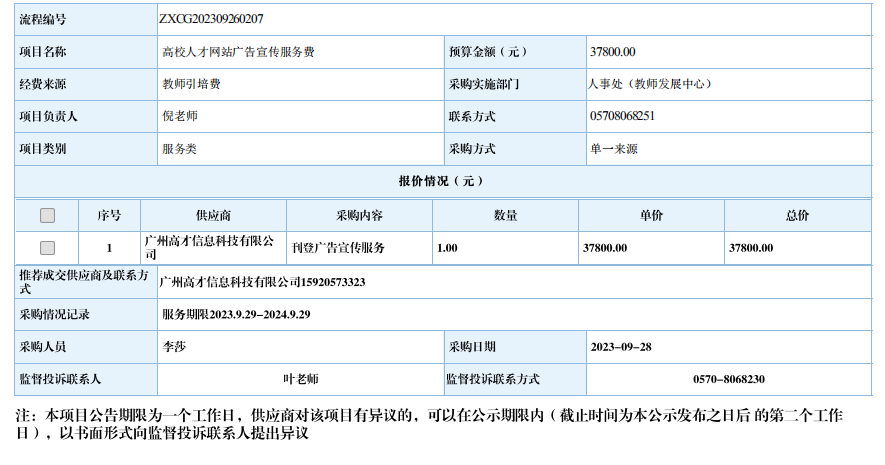 江南网页版高校人才网站广告宣传服务费自行采购信息公示