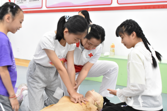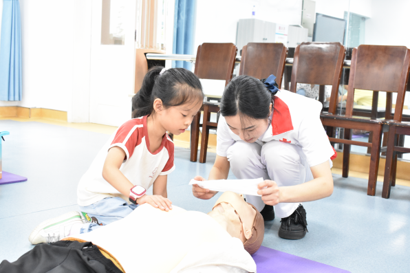 孩子们都踊跃配合老师进行专业演示,现场气氛活跃,互动频繁。孩子们表现积极,探索急救科普知识的兴趣浓厚。