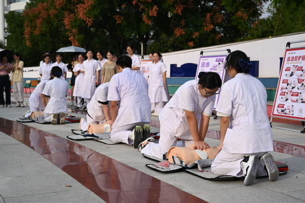 近日,我校通过开展“‘医’起迎亚运·‘救’在你身边”——世界急救日主题宣传系列活动,进一步宣传普及应急救护知识,增强我校师生自救互救能力。工作人员以生动、直观的模拟操作为师生们现场演示了急救全过程,并讲解了心肺复苏、海姆立克急救法等急救技能及注意事项,帮助大家掌握基本自救互救技能和要领。