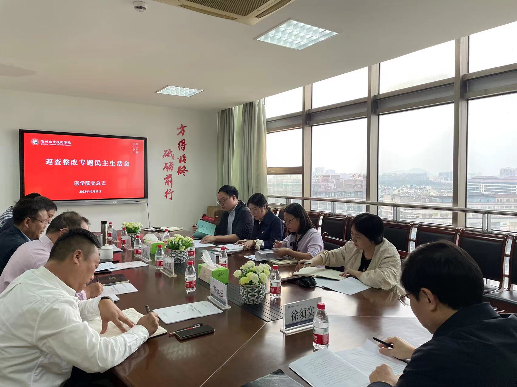 根据校党委内部巡查要求,2023年10月11日下午,医学院党总支在9楼会议室召开巡查整改专题民主生活会。医学院班子、党总支委员出席,校党委书记徐须实,校党委委员、纪委书记、巡查组组长方焕云,校党委委员、组织部部长周帅,校纪委副书记、纪检室主任、巡查组副组长徐有强应邀到会指导,会议由医学院党总支书记余文富主持。