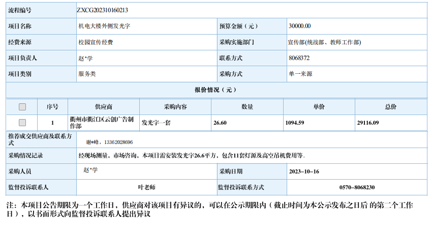 江南网页版机电大楼外侧发光字自行采购信息公示