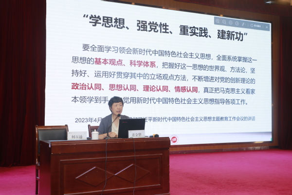 董金华教授紧紧围绕习近平新时代中国特色社会主义思想是党和国家必须长期坚持的指导思想这一主题,以习近平总书记在学习贯彻习近平新时代中国特色社会主义思想主题教育工作会议上的讲话、党的二十大报告、《习近平谈治国理政》(第一、二、三、四卷)以及《中共中央关于党的百年奋斗重大成就和历史经验的决议》、党的十九大报告等为主要依据,对习近平新时代中国特色社会主义思想作全面系统的总论阐述,让广大领导干部深入领会这一思想的时代意义、理论意义、实践意义和世界意义;深刻理解其主要内容、精神实质、丰富内涵和实践要求,深刻把握这一思想贯穿的马克思主义立场观点方法,知其然又知其所以然,不断提高马克思主义理论水平,深刻领会“两个确立”的决定性意义,增强“四个意识”、坚定“四个自信”、做到“两个维护”,更加自觉地用以武装头脑、指导实践、推动工作。报告站位高、视野宽,主题鲜明、内容丰富、务实高效,对大家准确把握习近平新时代中国特色社会主义思想、推动学校高质量发展具有很强的指导意义。