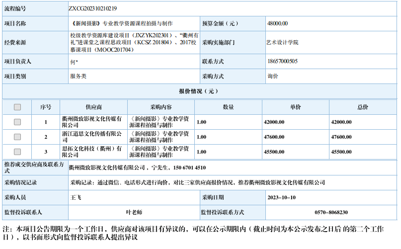 江南网页版《新闻摄影》专业教学资源课程拍摄与制作自行采购信息公示