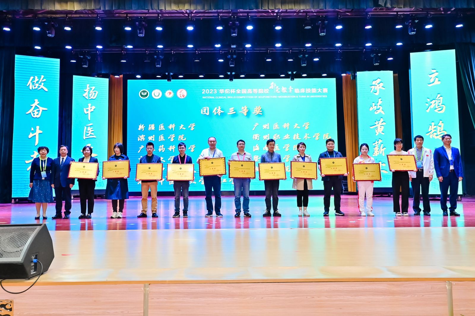 10月13日至15日,由中国针灸学会、全国中医药高等教育学会主办,山东中医药大学承办的2023华佗杯全国高等院校针灸推拿临床技能大赛在山东济南顺利举行,来自全国42所中医药高等院校,84支参赛队伍开展为期2天的精彩角逐。我校医学院陈婷老师、朱美香老师指导的参赛团队(毛旭清、刘西平、封鹭琪、杨飞、方诗意、葛浩锟、徐慧斌、刘云)喜获团体三等奖。