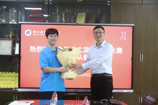 徐须实、吕延文代表学校向获奖团队表示热烈祝贺并赠送鲜花、合影留念。