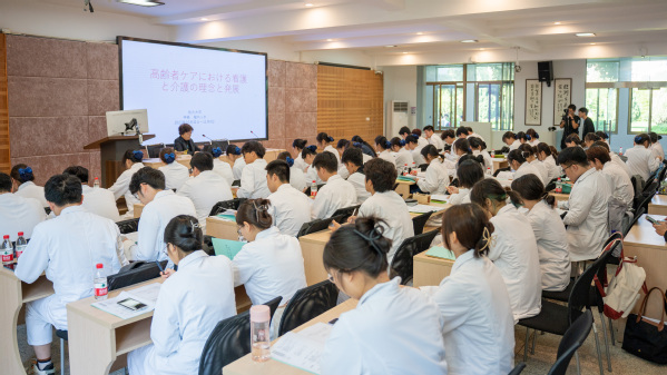 徐须实表示,今天的开班典礼,标志着两校合作培养国际化高端护理人才进入实质性实施阶段。学校将以此次开班为契机,加强和日本佐久大学的联系对接,学习借鉴日本养老护理服务的新理念、新思维、新方法、新技术,校校合作共同提升人才培养质量。希望首届中日合作办学护理专业的68名同学,珍惜来之不易的学习机会,利用学校为同学们创造的国际化学习平台,努力学习,熟练掌握国际先进护理理念、专业知识和临床技能,锤炼过硬本领,以专业发展为立身之本,以真才实学提升自己、创造价值、服务社会!希望中日合作办学项目能成为中日教育、文化、人文等领域友好交流的桥梁纽带和师生友好往来的平台。