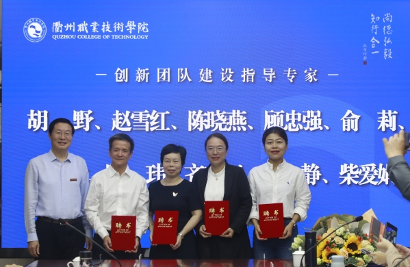 徐须实为胡野、赵雪红、陈晓燕、柴爱娟等行业专家颁发浙江省护理专业中高职一体化教师教学创新团队建设指导专家聘书。