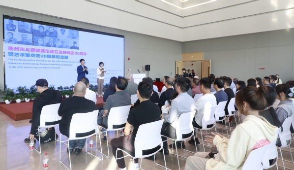 30年前,衢州市与雷德温市成为友好城市,2002年,衢州市与雷德温市安德森艺术中心启动了互派艺术家交流项目,衢职院发挥专业特长,积极参与互派艺术家交流项目,选派教师赴雷德温进行油画创作和摄影创作交流,举办了艺术展览,同时接待了多批雷德温市艺术家来访交流。在衢州市与雷德温市友好城市文化交流项目20周年纪念之际,应我校邀请,美国雷德温市友好代表团美国雷德温市姐妹城市委员会主席彭涛一行来衢交流,为两地艺术家交流和友谊的延续开启了新篇章。