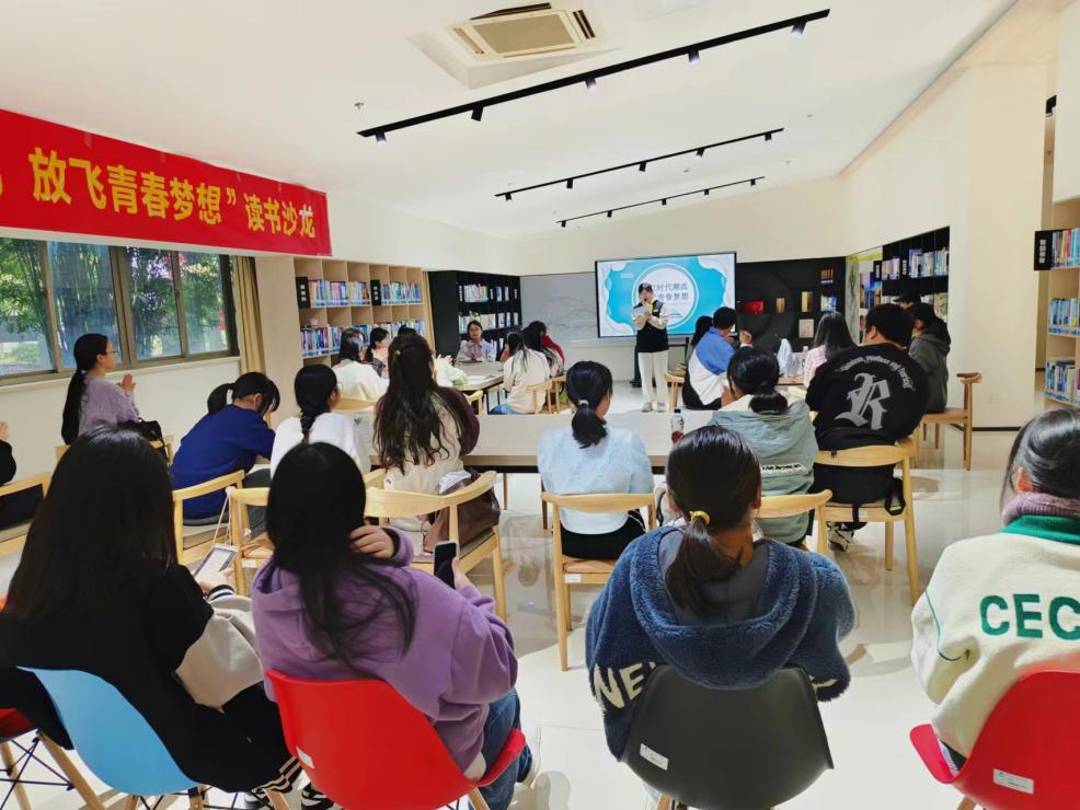 11月15日下午,我校图书馆在四省边际产业资料中心成功举办“勇立时代浪潮,放飞青春梦想”主题读书沙龙活动,本次活动吸引了100余名读者参加,30名读者上台分享读书感悟。图书馆薛晶老师作为分享嘉宾和同学们进行了交流分享。