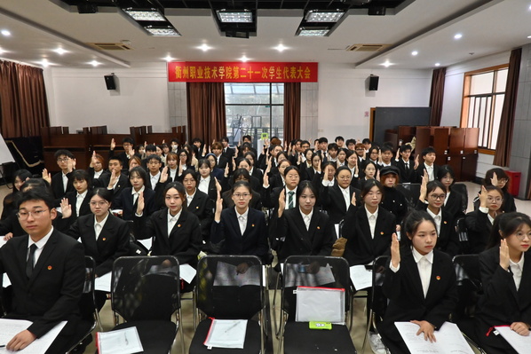 11月18日,江南网页版第二十一次学生代表大会在我校多功能厅召开。校党委副书记何百通、团衢州市委副书记徐擎焱、校党委学工部部长叶俊、校团委书记徐天出席大会。我校80名学生代表及相关工作人员参加大会。