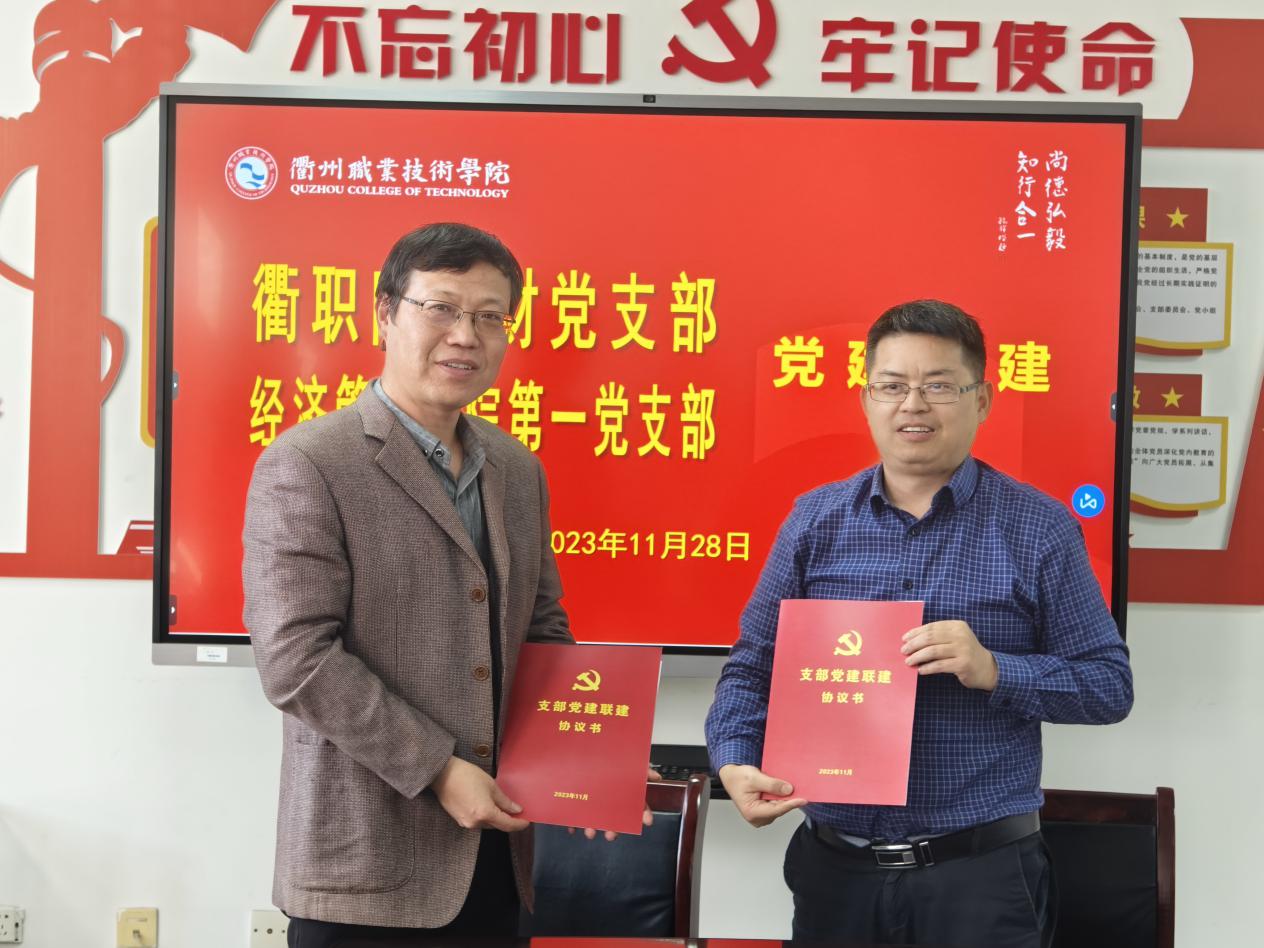 在共建活动会上,计财支部刘建军、经管学院党总支书记斯彬彬分别介绍了党支部情况、党建活动特色以及业务工作开展情况,交流了党建经验。刘建军书记与经管学院第一支部宋建军书记签订了支部结对共建协议,开启了“结对共建”新篇章。
