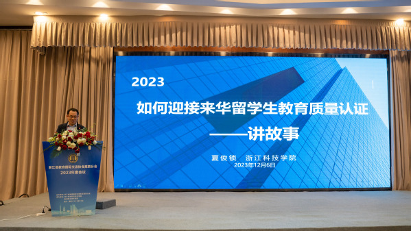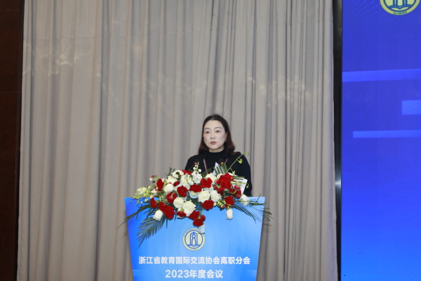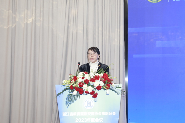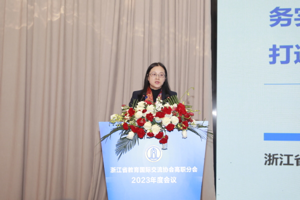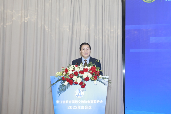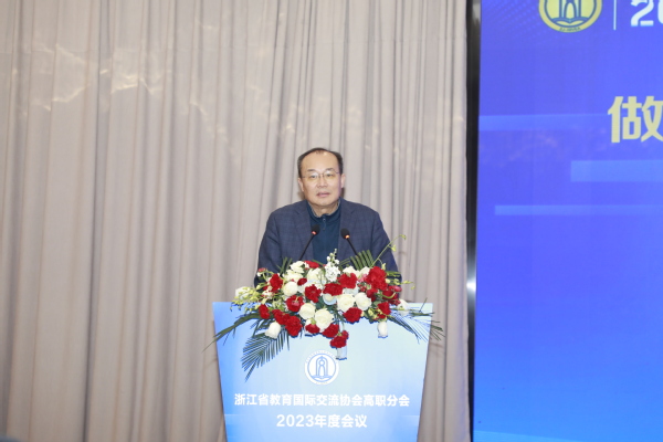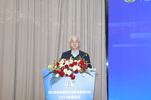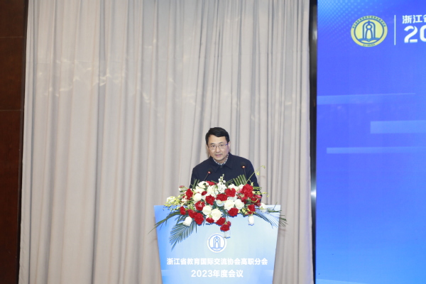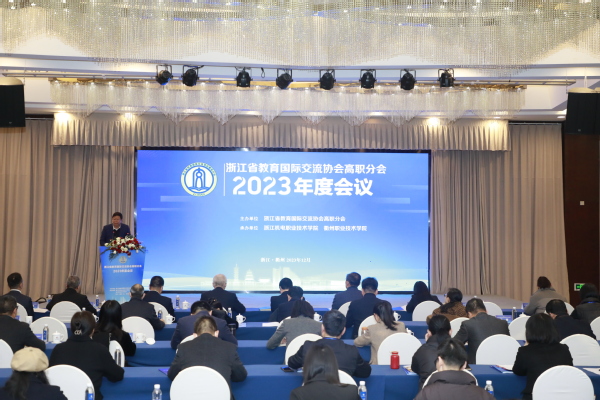 12月6日,浙江省教育国际交流协会高职分会2023年度会议在衢州隆重举行。中国教育国际交流协会常务理事宗瓦,中国教育国际交流协会港澳台办主任金雷,省教育厅国际合作与交流处处长、省教育国际交流协会秘书长蓝晶晶,省教育国际交流协会高职分会会长、浙江机电职业技术学院校长贺星岳,省教育国际交流协会高职分会副会长、浙江经贸职业技术学院校长陈德泉出席,全省40多所职业院校的领导、嘉宾参加。省教育国际交流协会副秘书长陈璐、我校党委书记徐须实致辞。省教育国际交流协会高职分会副会长、浙江商业职业技术学院校长张宝忠主持。