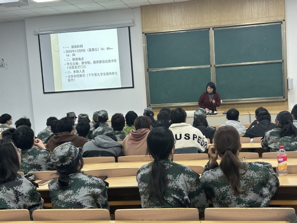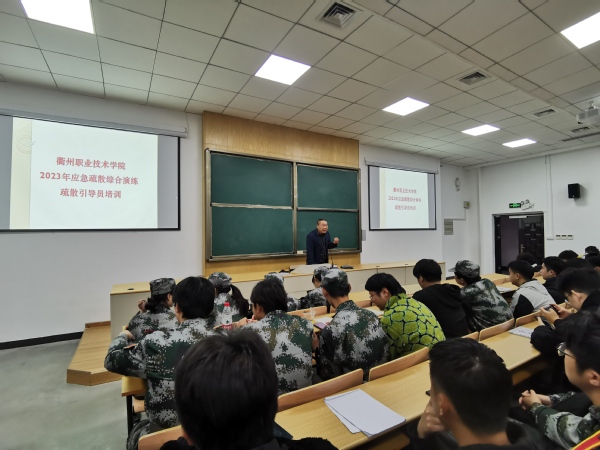 为切实做好2023年应急疏散综合演练,提高疏散引导员的火灾防范意识,增强疏散技能,提高火灾发生时的应对能力。12月7日晚,学工部组织开展应急疏散演练组疏散引导员培训,由学工部、后勤保卫处老师进行讲解。