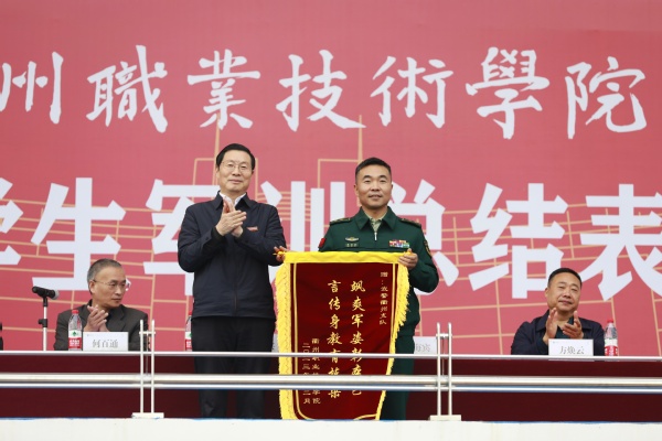 校党委书记徐须实讲话。他希望同学们要坚定报国信念,筑牢爱党爱国理想基石。要在关注学业与就业的基础上,要把听党话、跟党走变成自觉追求,坚定理想信念,把个人成长与国家需求结合在一起,立大志、明大德、成大才、担大任,以只争朝夕的姿态和拼劲,走好自己的大学旅程,在传承红色根脉中实现人生价值;以自强报国的信念和担当,勇挑历史使命,在实现中国梦的生动实践中放飞青春梦想。要珍惜大学时光,勤奋笃学成就更好自己。大学既是追逐个人梦想的舞台,也是改变未来命运的钥匙。要在大学期间刻苦学习,保持终身学习、持续学习理念,巩固好、转化好军训成果,把军训期间养成的良好习惯保持下去,坚持体育锻炼,坚持自觉学习,在实践中经风雨长才干,在知行合一中练就过硬本领。要注重全面发展,实践历练增强能力本领。根据自己的兴趣爱好参加各种社团、技能竞赛、文体活动、社会实践、公益活动,坚持德智体美劳全面发展的理念,在学好专业课的同时,勇于报名参加各类专业竞赛、各类社团活动,在竞赛和各种活动中锻炼自己、提高自己,为未来发展做好积累、为进入社会做好充分准备。