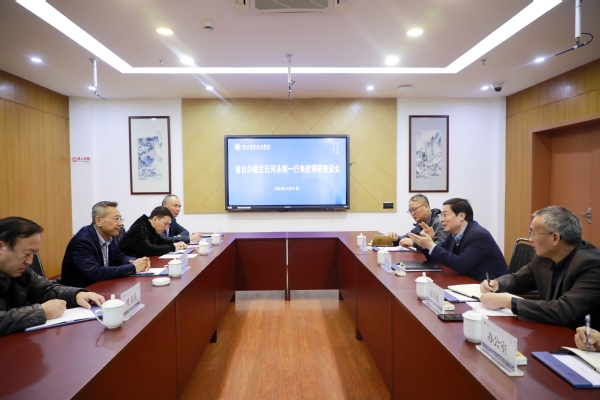 12月11日上午,省台办副主任何永明来校调研,就学校对台教育交流工作进行座谈交流。省台办党政处三级调研员章智,我校党委书记徐须实,市台办副主任叶卫兵,我校党委副书记何百通,党委委员、宣传部长孔庆红陪同。