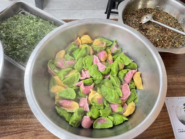 一盘盘热腾腾的饺子整齐地摆满了桌面。这些饺子不仅美味可口,更承载了学校的温情和对老师的关爱。老师们纷纷表示,能和大家在一起包饺子感觉很幸福、很温暖。非常感谢学校让老师们度过了一个难忘的冬至。