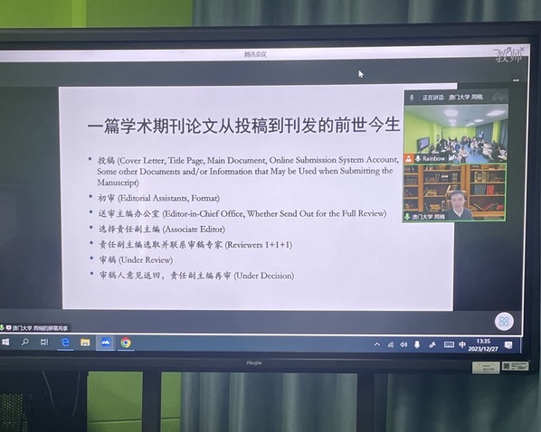作为SSCI国际核心期刊杂志副主编,周楠结合自己的写作和审稿经验,分享了SSCI论文的撰写与投稿心得。从SSCI副主编和审稿人的视角出发,周楠首先介绍了学术期刊论文的投稿流程,之后细致讲解了文章题目、摘要、文章结构的撰写并强调了学术规范。最后,周楠从投稿者和写作者的视角为老师们讲解了期刊的选择。