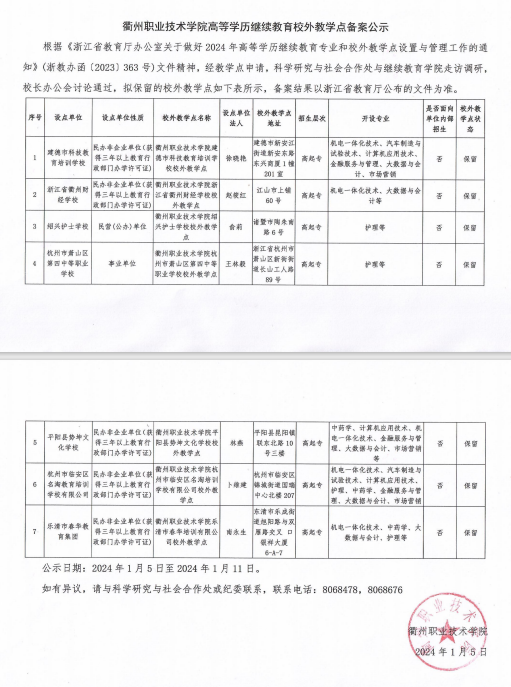 高等学历继续教育校外教学点备案公示(保留)