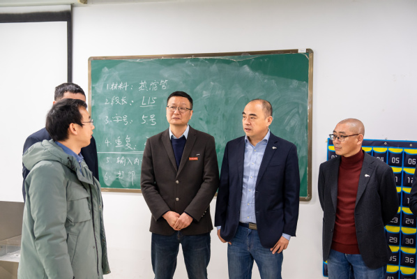 仪式前,张工、吴成富一行实地走访了共富学院、工业互联网实训中心、医护康养实训中心、智能制造实训中心,详细了解我校服务地方、专业和实训室建设等情况。