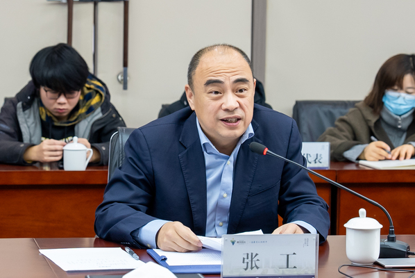 张工讲话。他说,衢职院-华夏航空产业学院的成立,是校企双方承接国家产教融合战略的具体实践,为学生提供实践机会,提高就业竞争力,为企业带来专业人才的持续供给,提升行业竞争力,将形成校企双方良性的人才培养与就业循环。他表示,华夏航空控股在航空教育培训领域多年的深耕和积累,对航空技能人才的需求有着深刻的认识,并形成了一套成熟的航空专业教育体系,希望通过与衢职院的紧密合作,校企双方借助产教融合模式共同培养出更多优秀的航空高素质技能人才,为衢州市乃至我国航空产业的发展贡献力量。