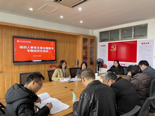1月18日上午,组织人事党支部召开2023年度主题教育专题组织生活会和民主评议党员,会议由支部书记张锦平同志主持,支部全体党员参加,校党委委员周帅同志作为普通党员参加会议并接受党员评议。