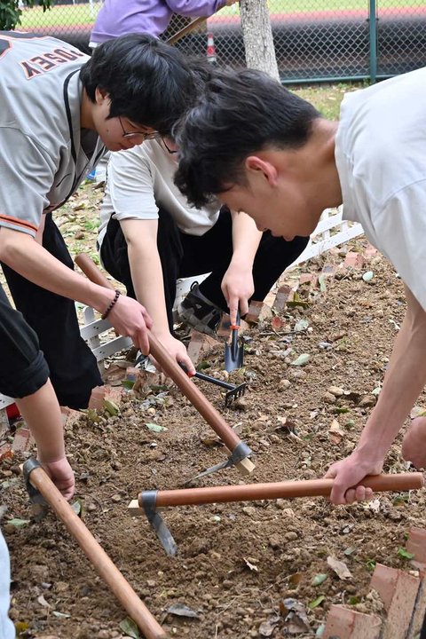 大家翻松土壤、平整土地、播撒种子、浇水灌溉,学习种植玉米、土豆、石榴等植物,了解植物生长习性和养护办法。以亲身经历感受一粥一饭的来之不易,感悟劳动的收货与意义。