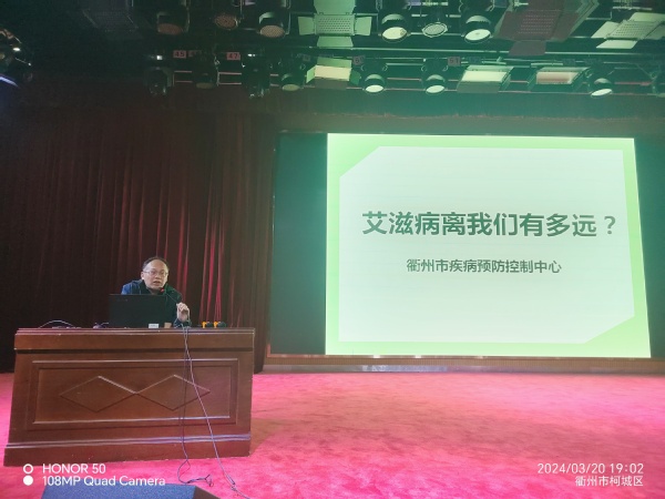 3月20日晚上,后勤保卫处邀请衢州市疾病预防控制中心艾滋病结核病防治科科长王炜到校开展结核病、艾滋病预防知识讲座。王炜结合真实案例,以“艾滋病离我们有多远”为讲座主题,通过丰富详实的数据、触目惊心的图片展示了艾滋病人的生存现状,用浅显易懂的语言对艾滋病的病理特征、流行势态、传播途径、潜在危险对社会的影响、防治措施等进行了讲解,让同学们感受到艾滋病与自己并不遥远,呼吁同学们谨慎对待恋爱与性行为,做到“主动检测、知艾防艾”。全校300多名师生聆听了讲座。