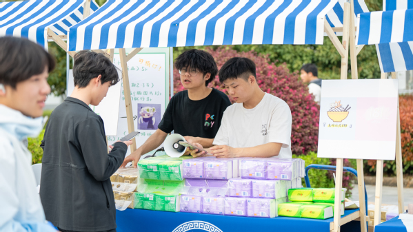 来自信息工程学院的胡同学售卖的是抽纸,他在当天销售了超过四千元纸巾,其中超过一千元是预售的,“因为卖得便宜,而且我送货上门的”,当问及销售的秘诀时,他这样回答,而价格比其他地方低的原因是他缩短了供应链,直接到厂家拿货。