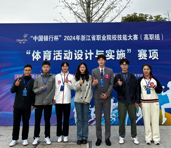 4月7日至8日,2024年浙江省职业院校技能大赛(高职组)“体育活动设计与实施”赛项在浙江工贸职业技术学院举行。全省23个高职院校的42支代表队共126名选手参赛。经过激烈角逐,衢职院文旅学院代表队由赵鑫、彭祥华老师带队指导的黄学智、郭嘉宝,戴妍队伍,在赛场上沉着冷静、团结一心、奋勇拼搏,最终取得了三等奖的佳绩。