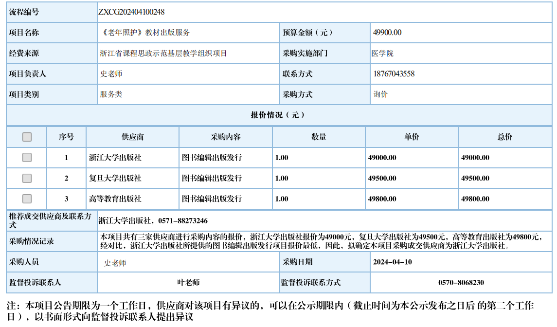 江南网页版《老年照护》教材出版服务自行采购信息公示