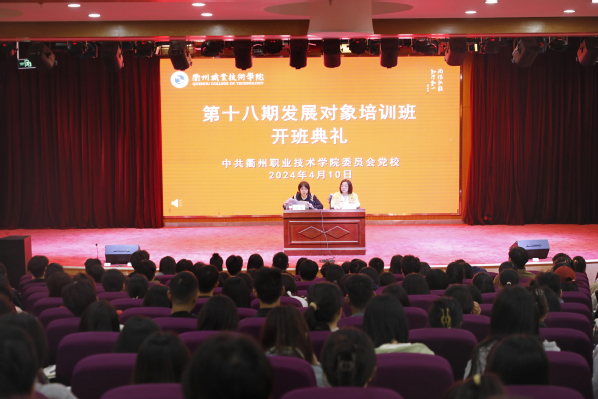 周帅作动员讲话。周帅从“坚定理想信仰,树立为共产主义奋斗终身的决心”“加强理论学习,不断端正入党动机”“坚持学以致用,时刻发挥先锋模范作用,做‘衢职先锋’的积极践行者”三个方面对培训班学员提出要求。