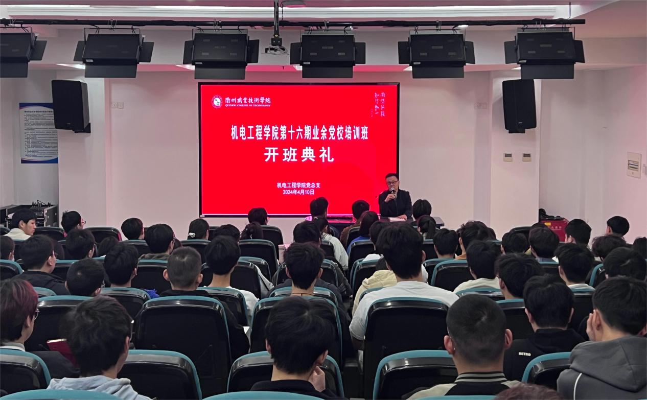 为全面贯彻习近平新时代中国特色社会主义思想,深入贯彻落实党的二十大精神,切实加强入党积极分子思想政治理论教育,4月10日下午,机电工程学院在3号报告厅举行第十六期入党积极分子培训班开班仪式暨第一讲党课。机电工程学院党总支书记朱峻出席开班仪式并作第一讲党课,开班仪式由组织员吕云鹏主持。
