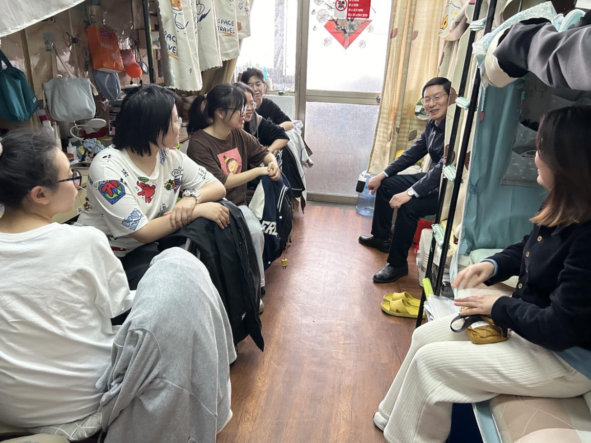 在3511寝室,徐须实了解了同学们的生活学习状况、实习就业规划等,鼓励同学们在下临床前要强化护理专业理论知识和实操技能,在校学习时间尽力争取各类荣誉奖项和技能证书,为将来实习就业和职业发展打下扎实基础。他亲切嘱咐同学们,务必要注意各类安全问题,特别是宿舍安全用电,女生自我保护,交通安全等,要注重互相提醒、及时反馈。