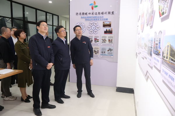 熊亮一行实地走访了四省边际(衢州)共富学院、工业互联网实训中心、医护康养实训中心、四省边际大健康公共实训中心,详细了解学校高水平专业群建设、实训基地建设、服务地方发展等情况。
