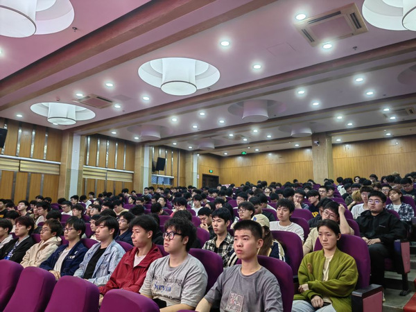 王定飞从“个人成长经历”“匠心永恒”“争创世界一流”三个方面,以自身事迹和精神激励学生。在工作中,他严谨钻研、一丝不苟并保持终身学习,热爱自己所做的工作,做到“简单的事情重复做,重复的事情认真做”。如此的信念使他在平凡的岗位上做出了不平凡的事迹。王定飞对在座的同学们表示殷切期待,希望同学们坚守匠心,保持耐心、专注、坚持,行行都能出状元!在场同学们倍受鼓舞。