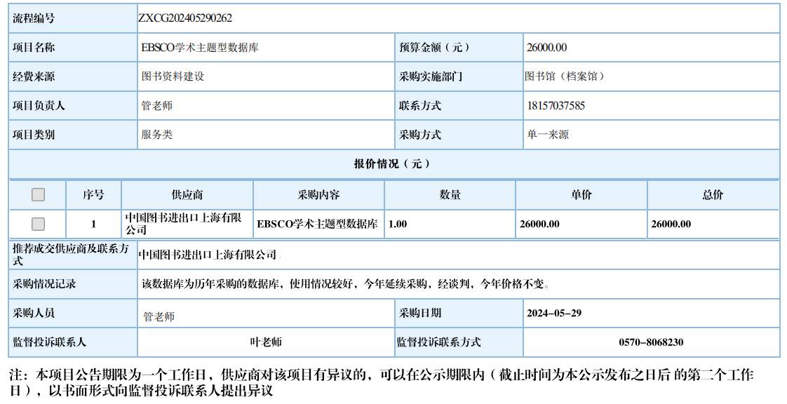 江南网页版EBSCO学术主题型数据库自行采购信息公示