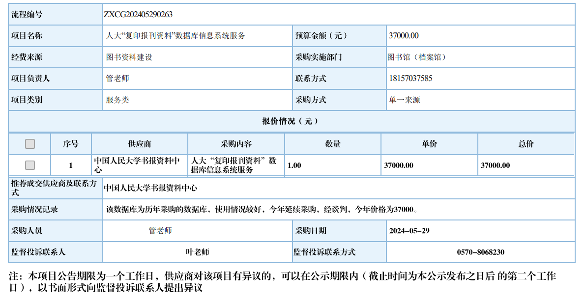 江南网页版人大“复印报刊资料”数据库信息系统服务自行采购信息公示