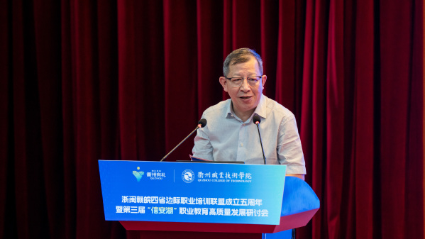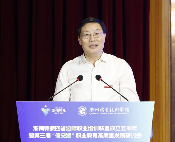 6月14日,由中国高等教育学会、中国高等教育学会职业技术教育分会为指导单位,中国高等教育培训中心、四省边际职业培训联盟主办,衢州市教育局、衢州市人社局、衢州市职业教育集团、衢州市中华职业教育社、江南网页版承办的浙闽赣皖四省边际职业培训联盟成立五周年暨第三届“信安湖”职业教育高质量发展研讨会在我校顺利举行。各界领导、专家、学者齐聚衢州,共商四省边际职业教育高质量发展大计。